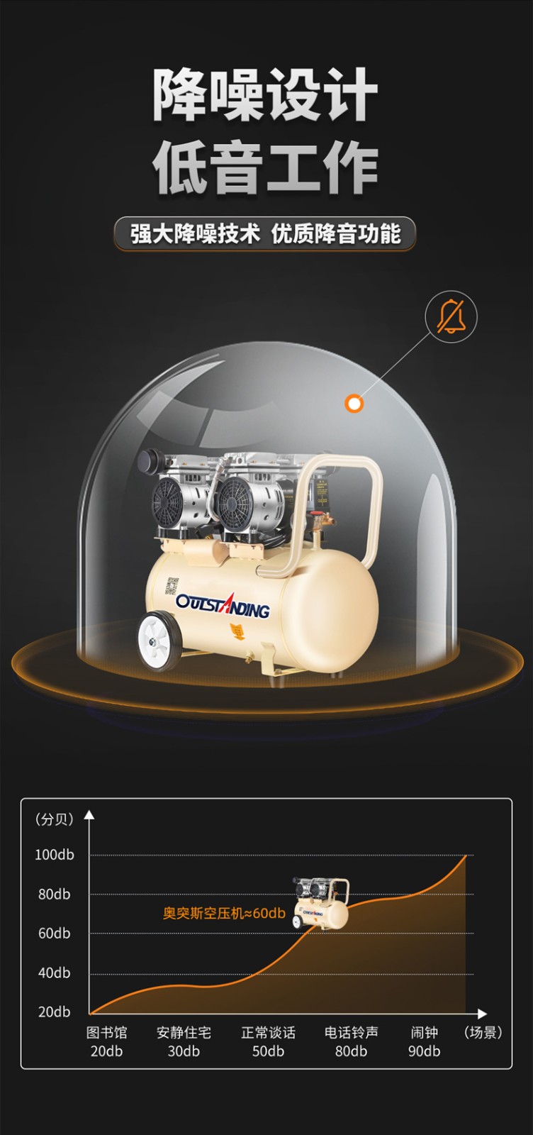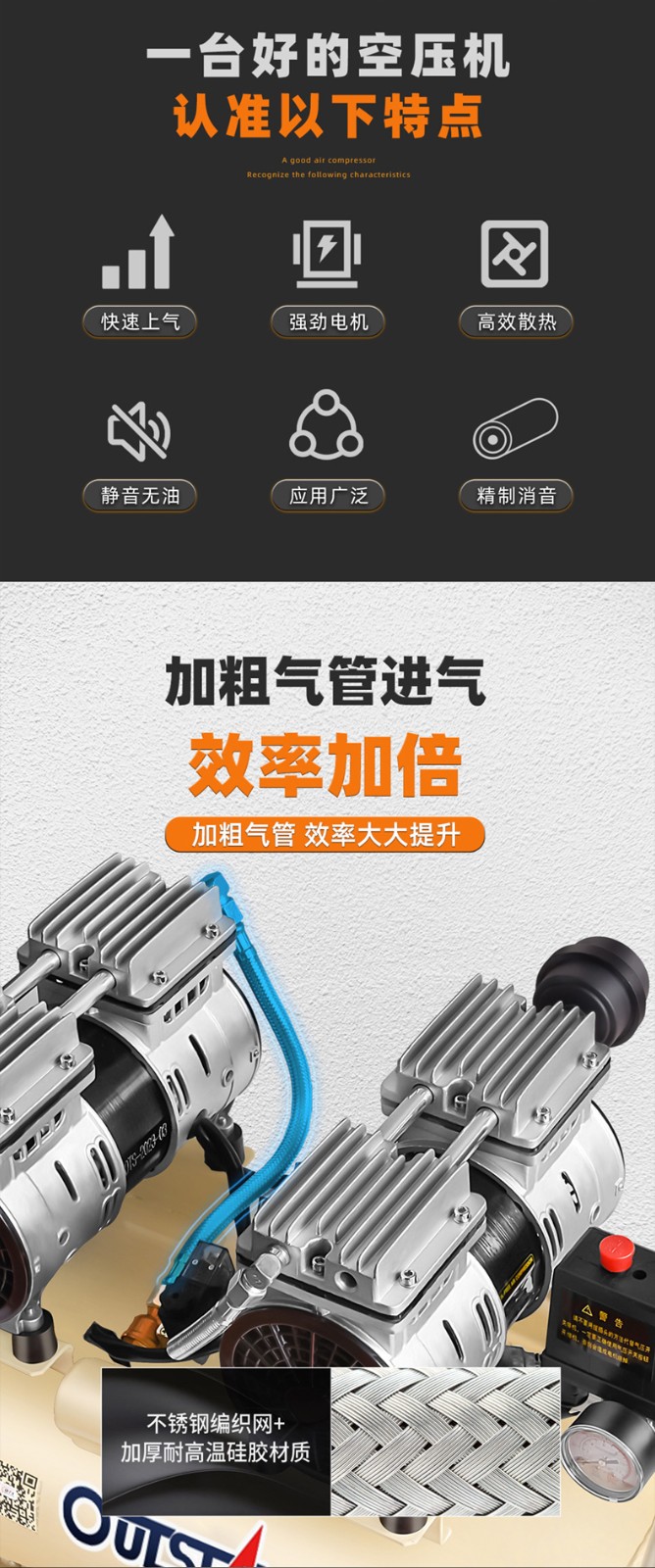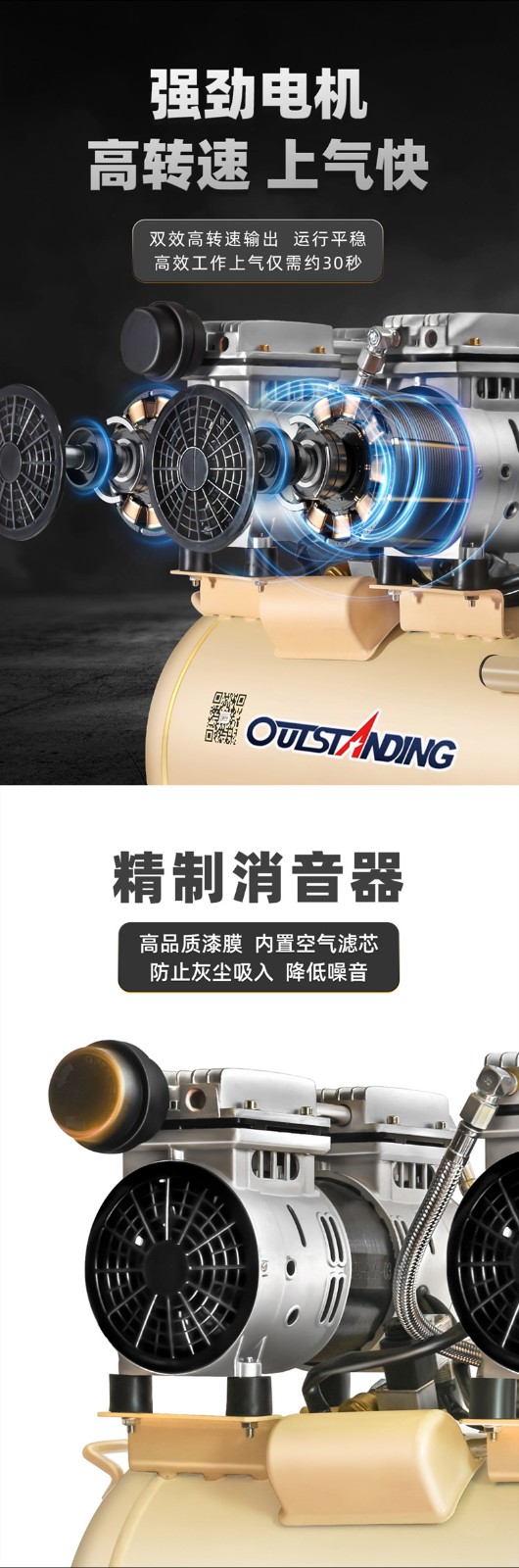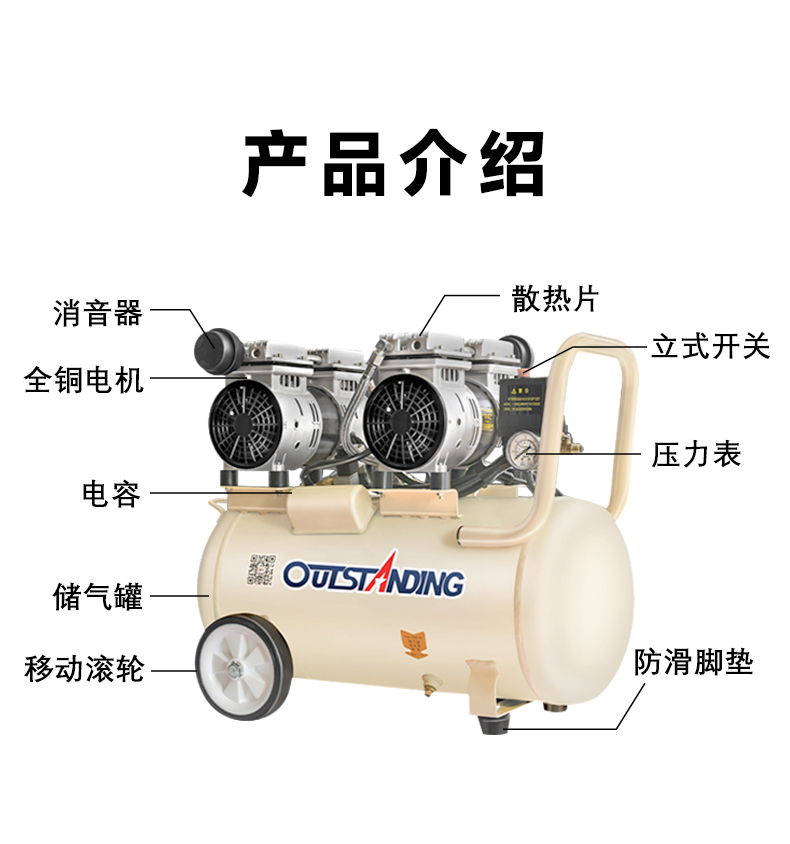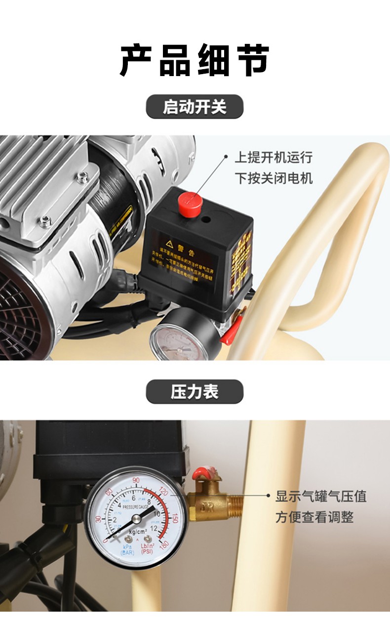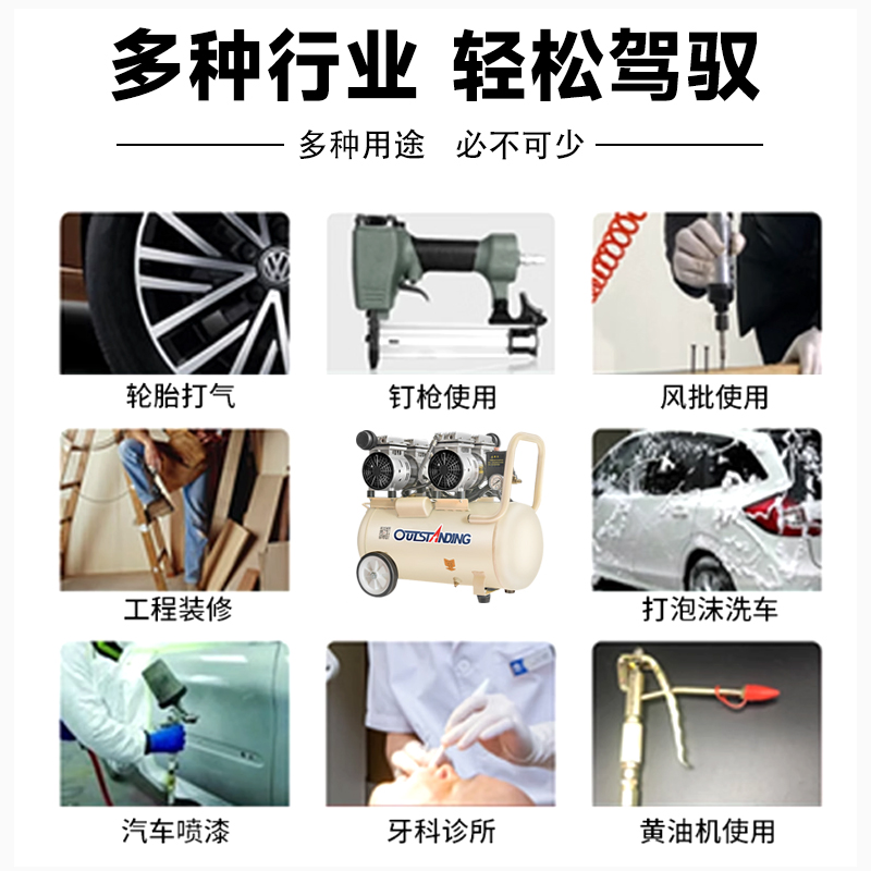 全新充氣泵靜音無油空氣壓縮機高壓打氣泵工業級空氣大功率充氣