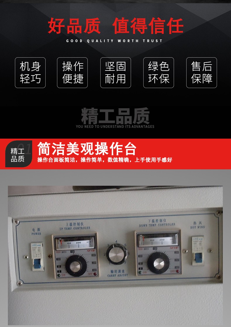- 控制系統(tǒng):是設(shè)備的 “大腦”,可以對(duì)加熱溫度、輸送速度、噴氣強(qiáng)度等參數(shù)進(jìn)行設(shè)置和控制。操作人員可以通過(guò)控制面板方便地操作機(jī)器,并且控制系統(tǒng)還具備溫度監(jiān)控和故障報(bào)警功能。例如,如果加熱溫度過(guò)高或過(guò)低,系統(tǒng)會(huì)發(fā)出警報(bào)并自動(dòng)調(diào)整溫度;如果機(jī)器出現(xiàn)故障,如風(fēng)機(jī)故障或輸送帶卡頓,也會(huì)及時(shí)提示操作人員進(jìn)行維修。