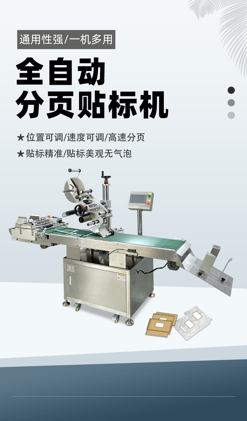 - 靈活性與適應性:全自動分頁貼標機可以根據不同的產品和標簽需求進行快速調整和設置,能夠適應多種產品規格和標簽樣式的貼標任務。無論是產品尺寸的變化還是標簽內容、形狀的改變,設備都可以通過簡單的參數設置或更換少量部件來滿足新的生產要求,在大規模生產中具有很強的靈活性和適應性。