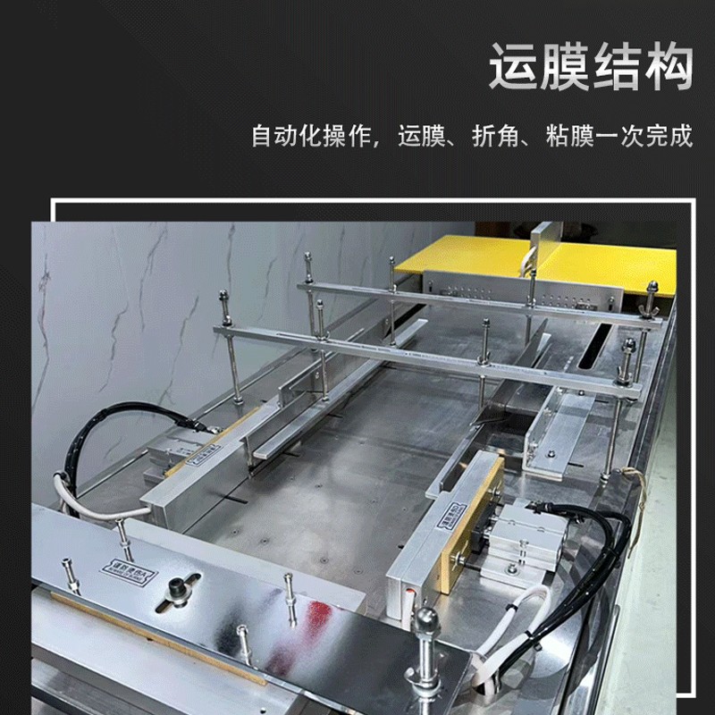 設備通過 “膜料預處理→人工上料定位→三維裹膜成型→熱封切邊→折邊定型→成品輸出” 的流程,實現產品的立體包裝,具體步驟拆解如下: